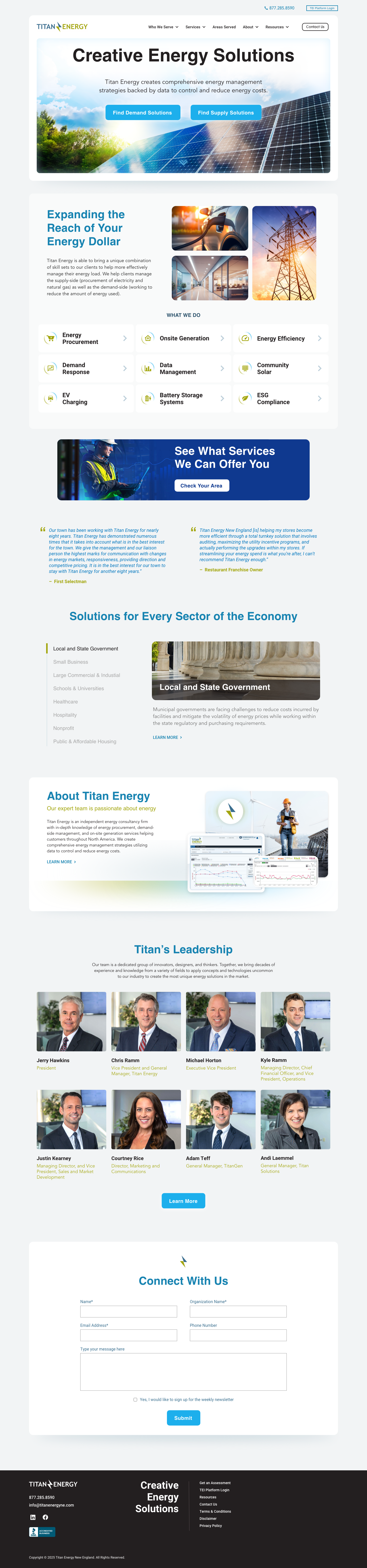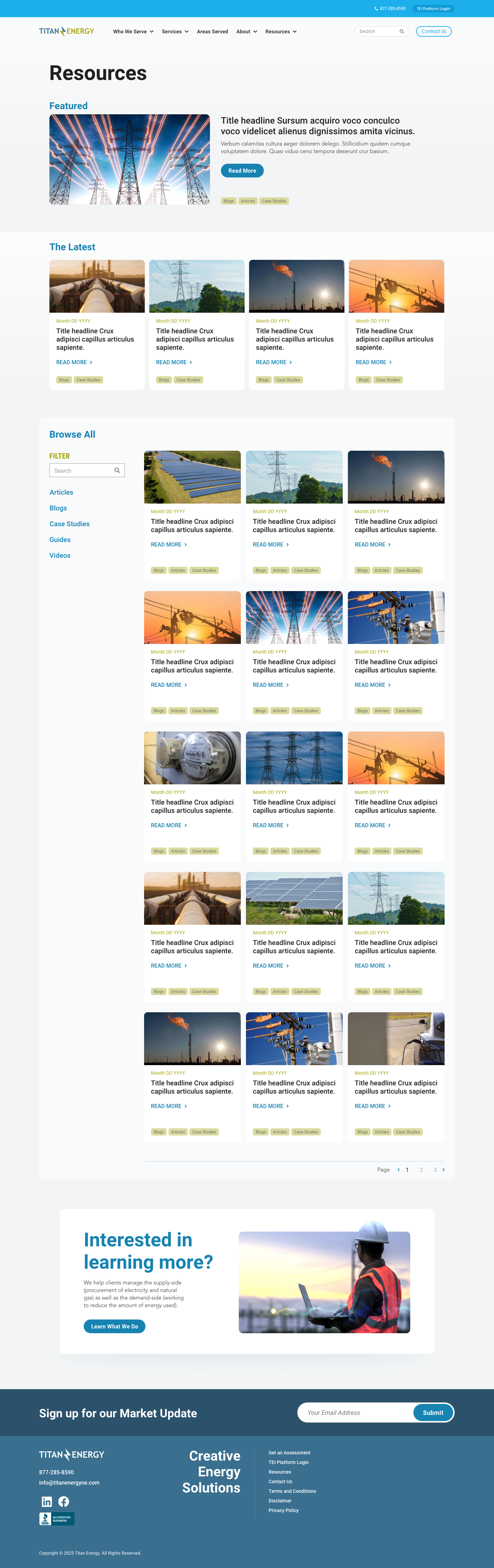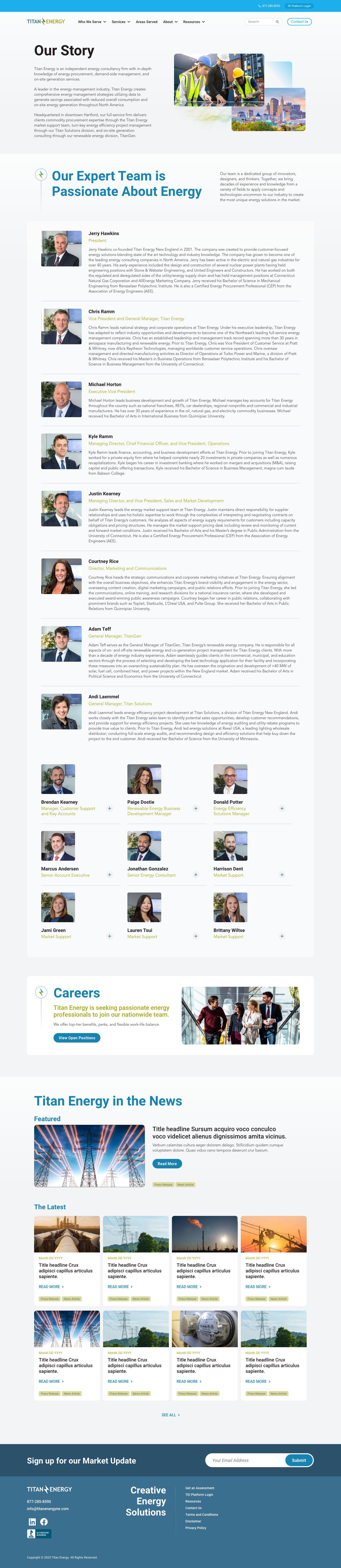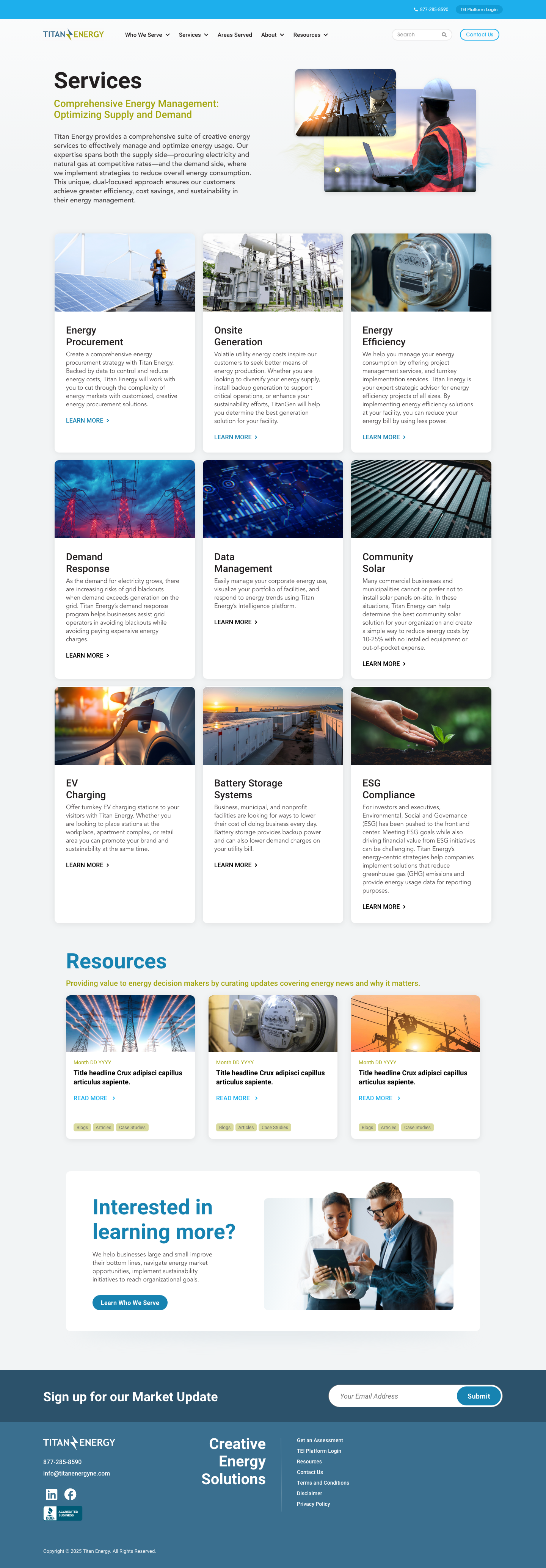 Conceptual homepage and interior layouts designed to establish a cohesive visual system and scalable structure for the Titan Energy website.
