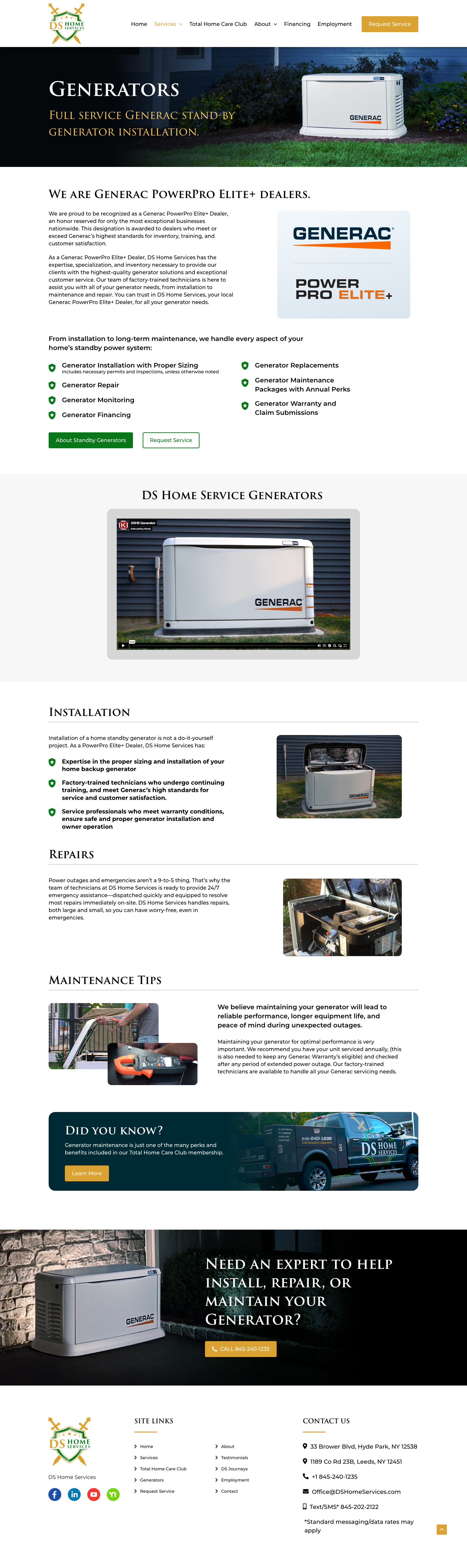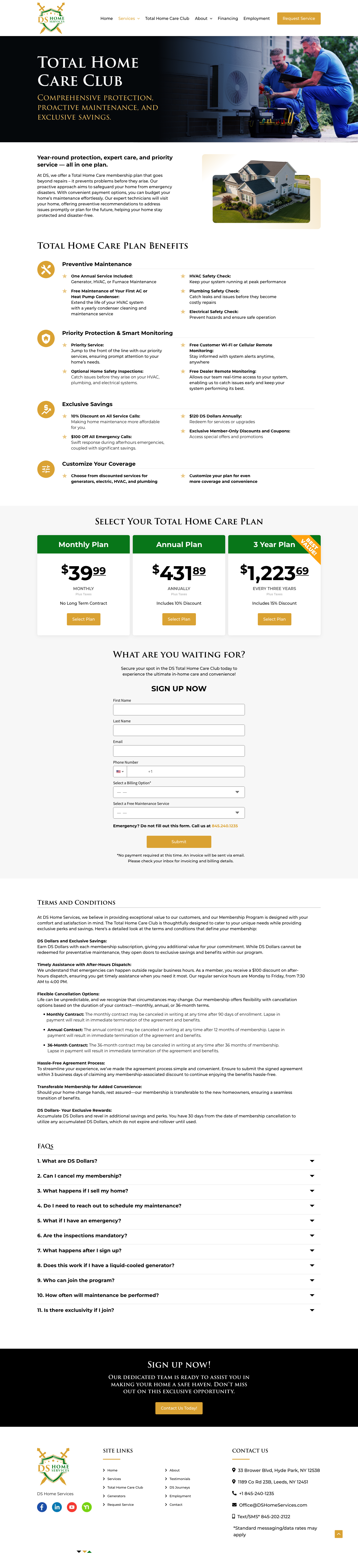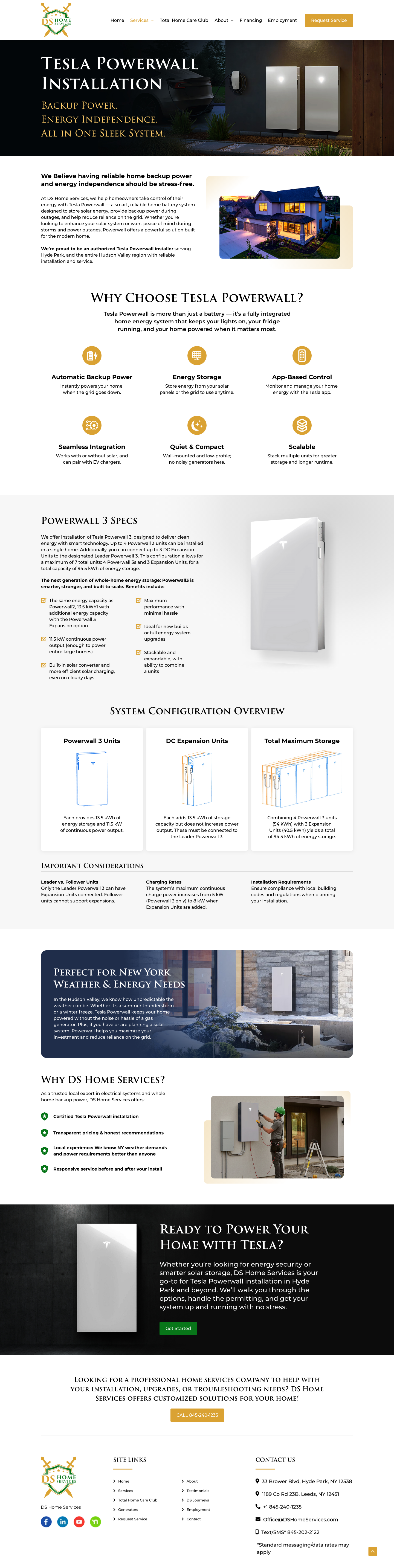 Landing page designs created to drive engagement and clearly communicate DS Home Services’ products and services.