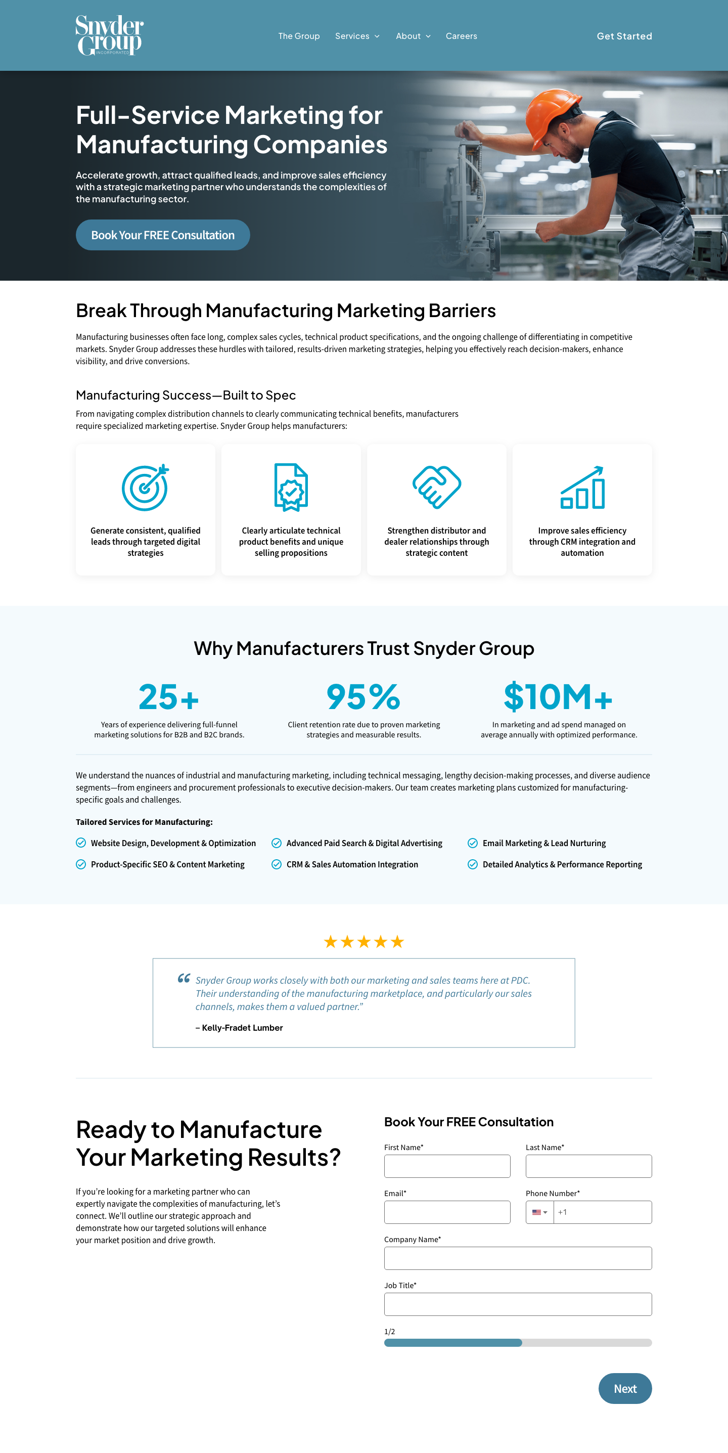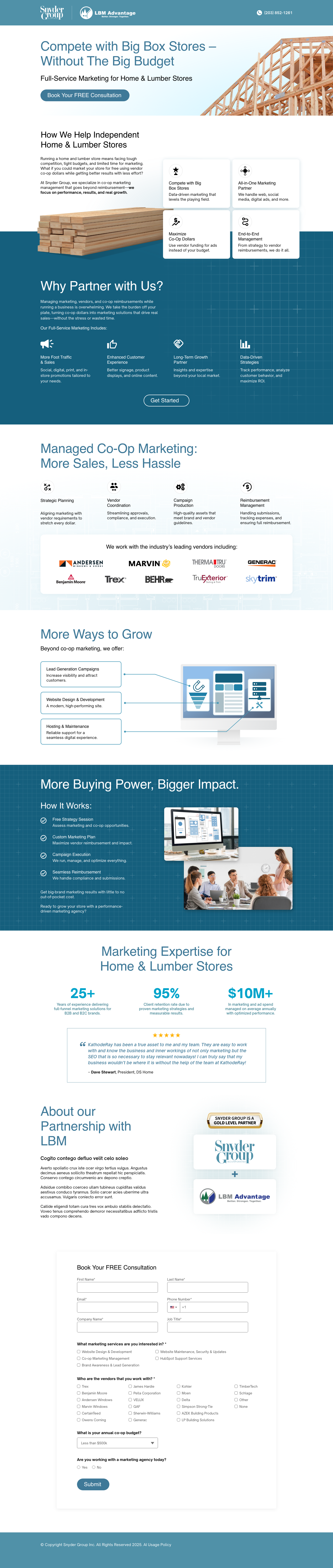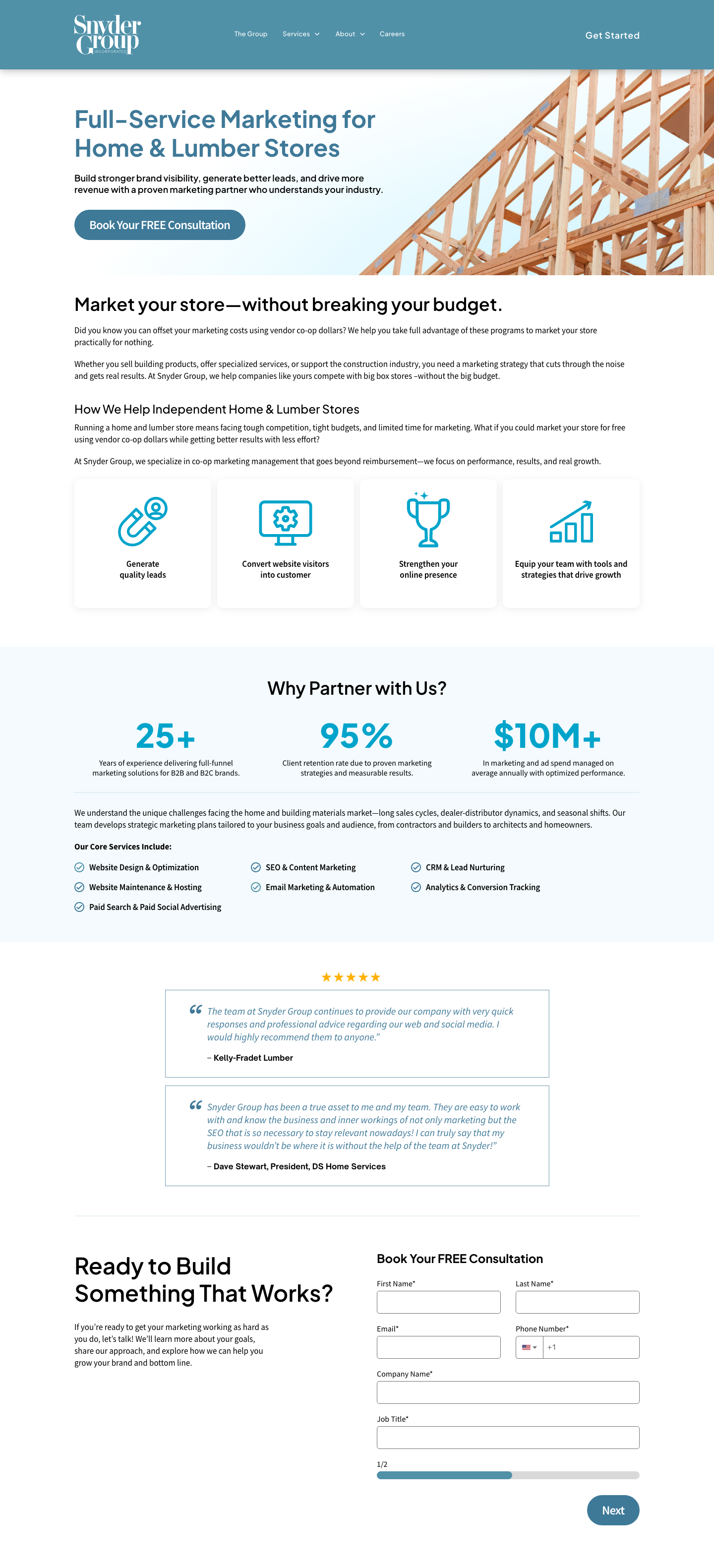 Landing pages designed to promote Snyder Group’s marketing services with clear messaging, strong hierarchy, and conversion-focused layouts.