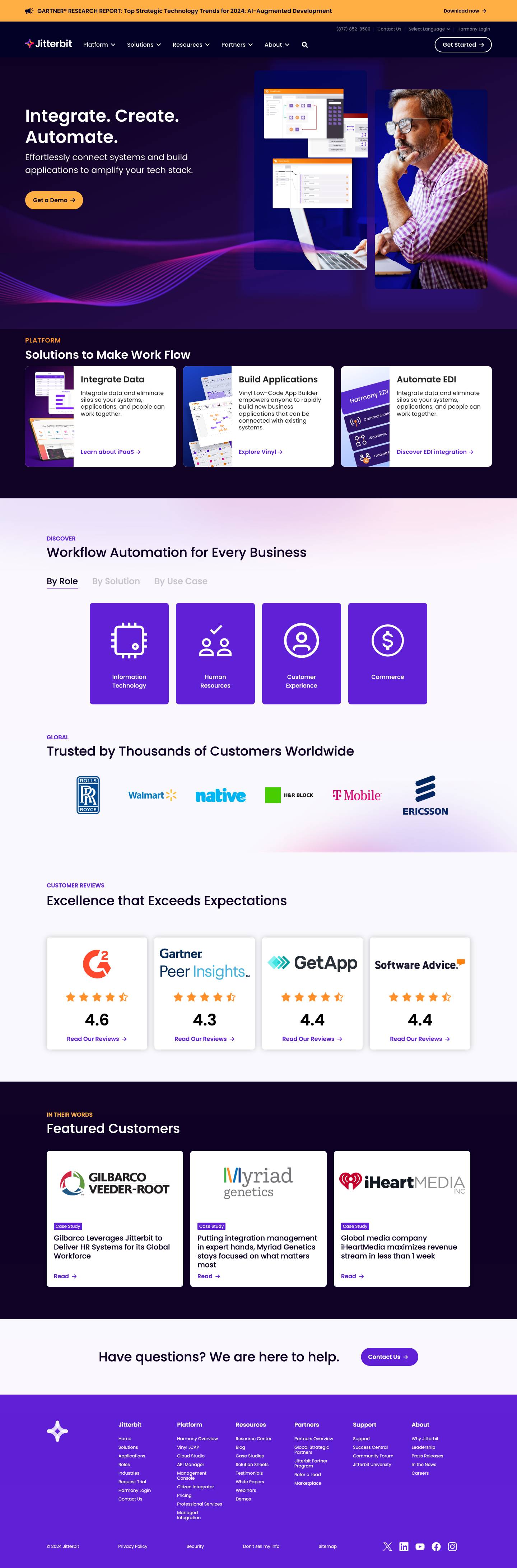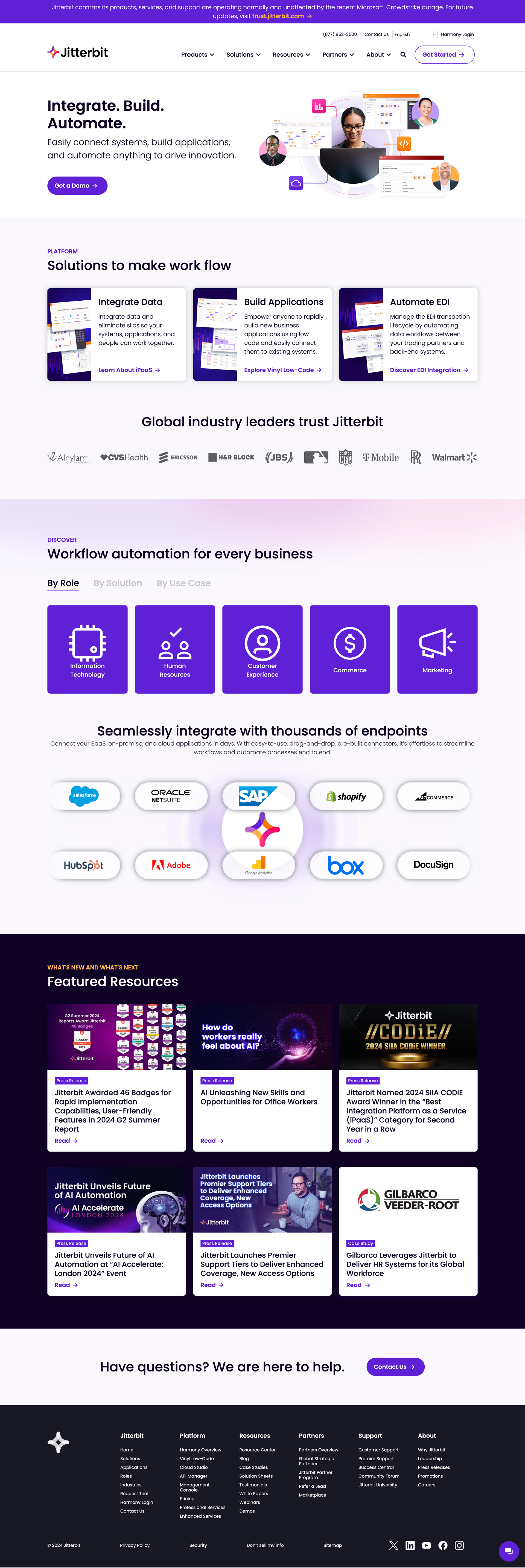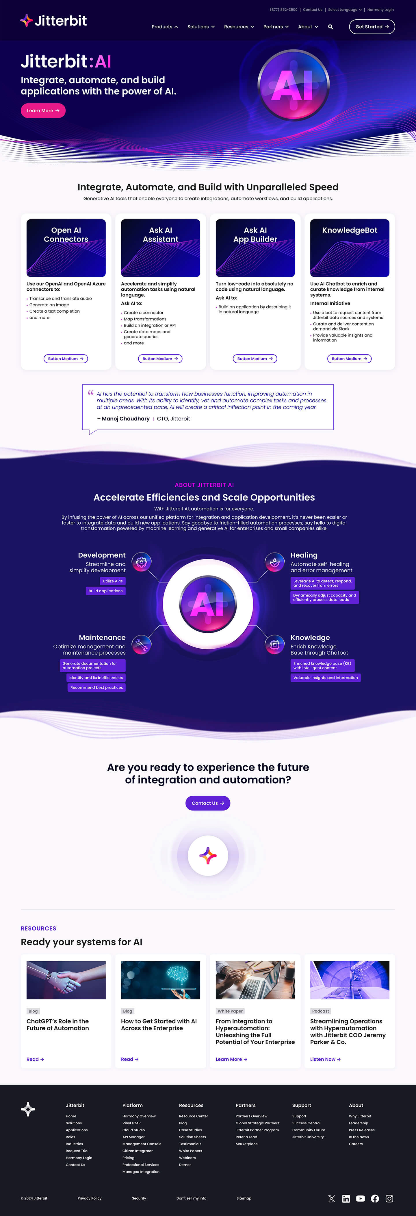 Responsive web page designs created to improve clarity, usability, and visual consistency across key areas of the Jitterbit site.